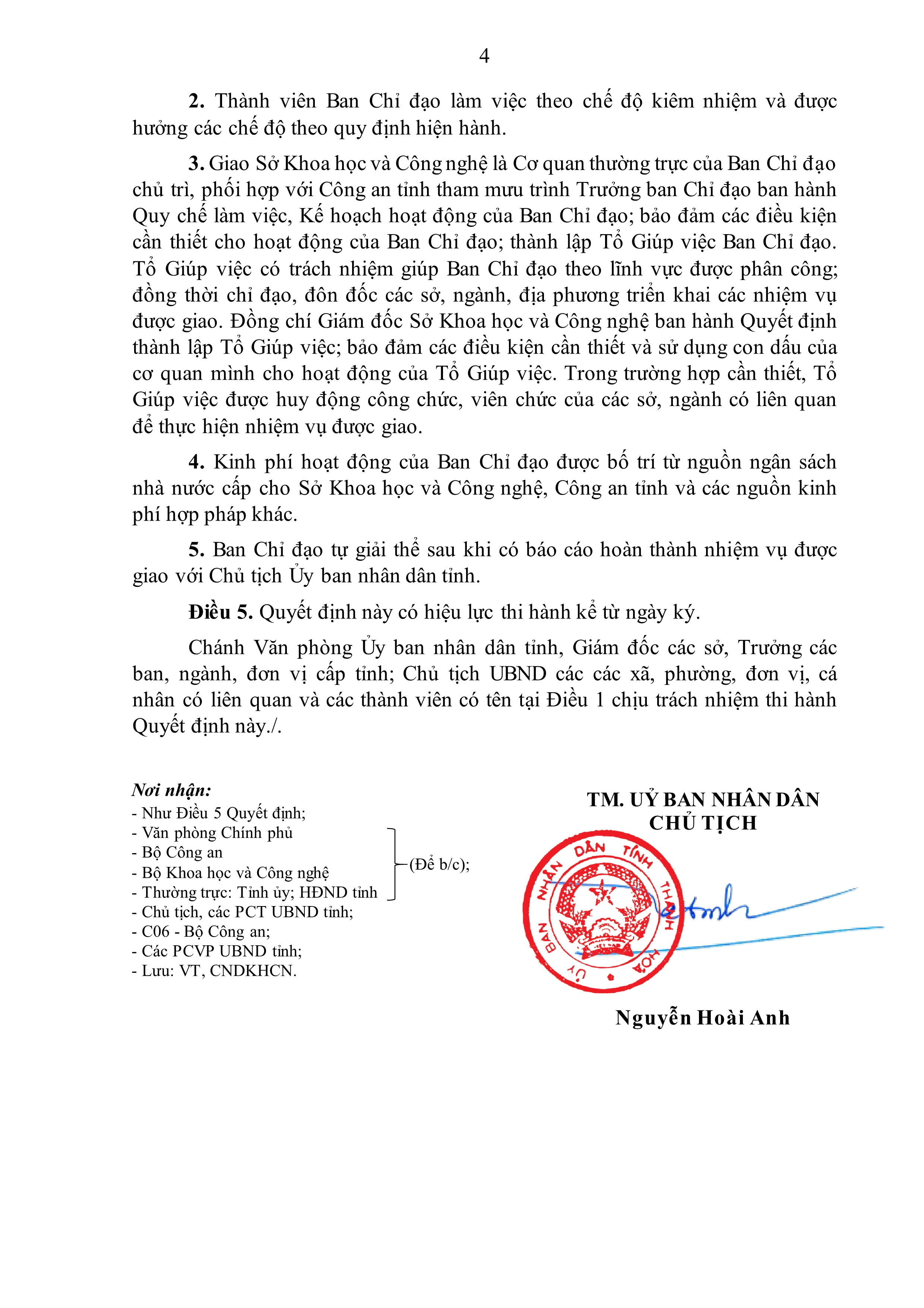 Ban Chỉ đạo tự giải thể sau khi có báo cáo hoàn thành nhiệm vụ được giao với Chủ tịch UBND tỉnh.